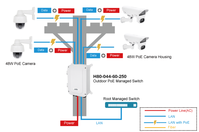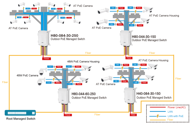 - 30W PoE per porta (H80-044-30-150, H80-084-30-250)